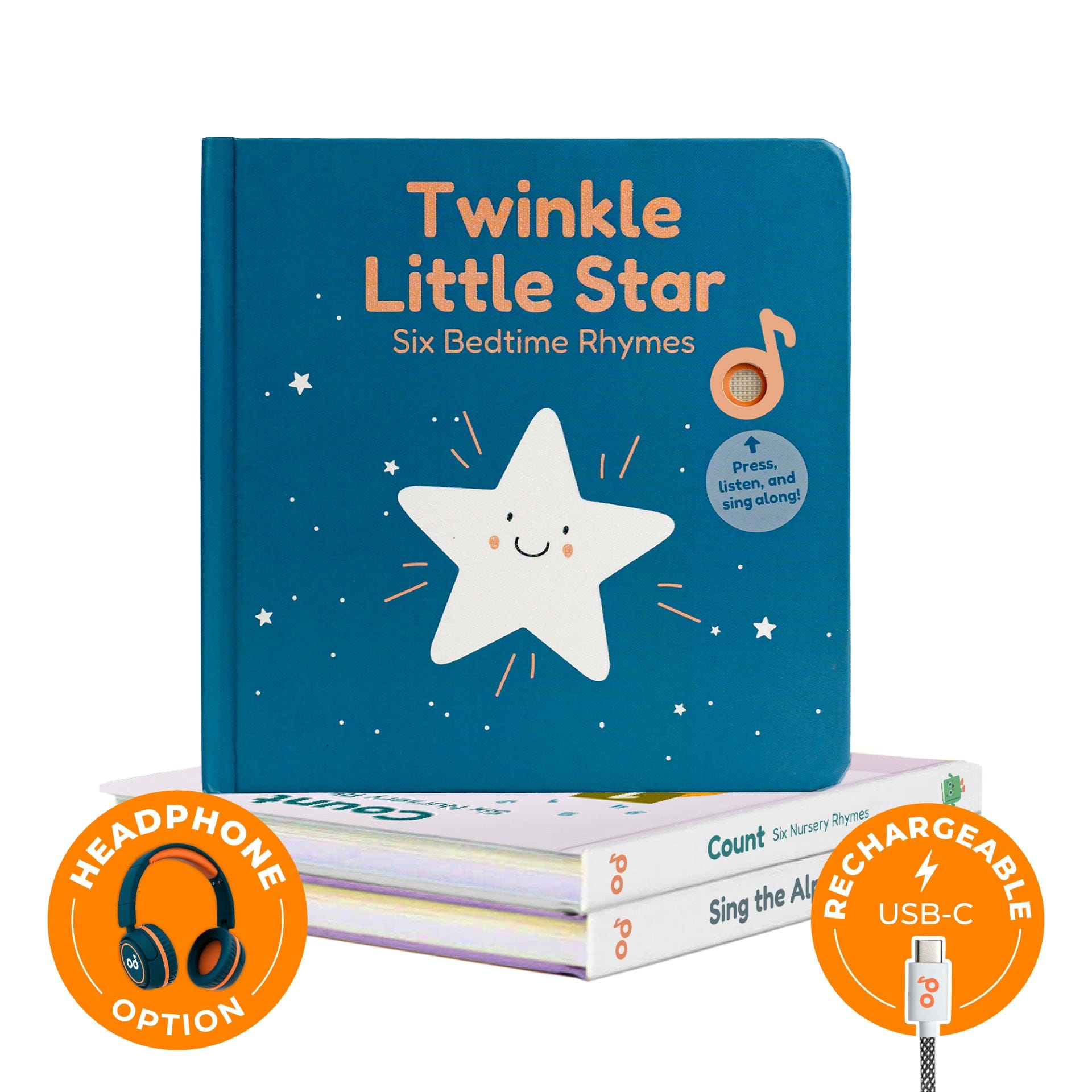 This sound book bundle is a fun, interactive way for young kids to start learning English. Sound books teach English through rhyme and repetition, a proven way to introduce and reinforce new words. With lively music kids love to sing along to, they can practice their pronunciation—all while having fun. Featured books include: Twinkle Little Star, Count, and Sing the Alphabet.